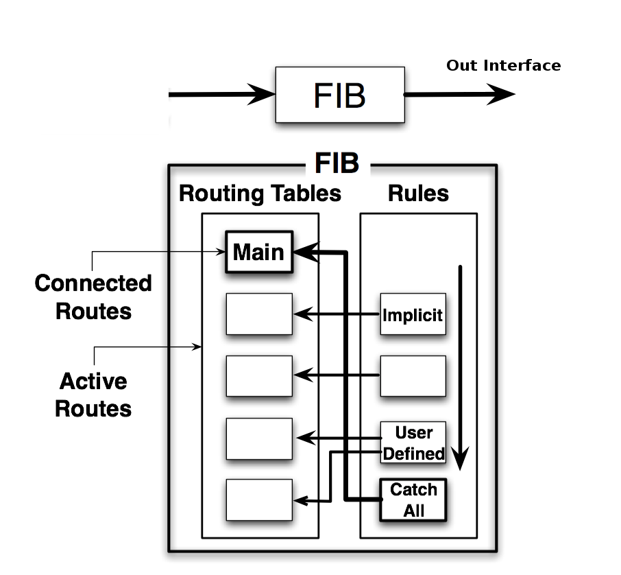 - FIB (Forwarding Information Base) — база для принятия решений о пересылке пакетов. Содержит копию необходимой информации о маршрутах.