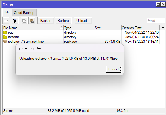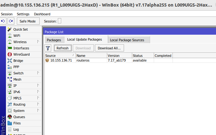 Локальное обновление RouterOS
